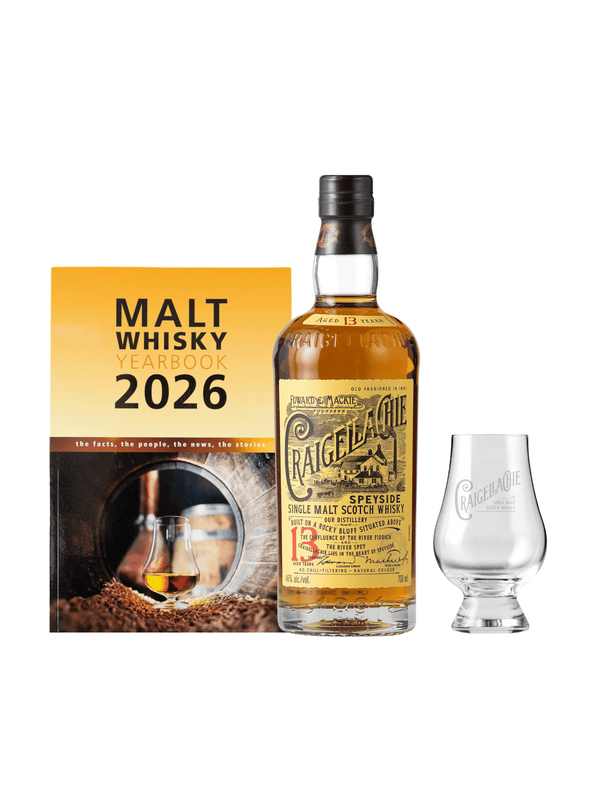 Discover the bold spirit of Speyside with the Craigellachie Discovery Gift Set, featuring the award-winning Craigellachie 13 Year Old, a branded Glencairn Glass, and the Malt Whisky Yearbook.
